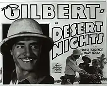 Desert Nights (also known as Thirst) is a 1929 American synchronized sound adventure/romantic drama film starring John Gilbert, Ernest Torrence, and Mary Nolan.[1][2] While the film has no audible dialog, it was released with a synchronized musical score with sound effects using both the sound-on-disc and sound-on-film process. Directed by William Nigh, the film was the last film without audible dialogue featuring John Gilbert.