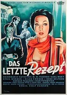 Desires or The Last Prescription (German: Das Letzte Rezept) is a 1952 West German drama film directed by Rolf Hansen and starring Heidemarie Hatheyer, O.W. Fischer, Sybil Werden and René Deltgen. The film is based on a play of the same title by Otto Eis and Egon Eis, written under the pen name of Thomas B. Foster.[1] It was shot at the Wiesbaden Studios and on location at the Salzburg Festival in Austria. The film's sets were designed by the art directors Paul Markwitz and Fritz Maurischat. It was entered into the 1952 Cannes Film Festival.[2]