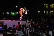 She's yet to win either Trinidad's Carnival Road March or Soca Monarch titles, although coming close on occasion. Despite this, she's become an icon of soca, renowned for her pop-oriented tunes incorporating both world and fusion music.[5] During both 2014 and 2015 Destra won Best International Act at the Black Canadian Awards.[6] As well Destra has collaborated with renowned artistes such as Nicki Minaj, Mr. Vegas, Karlie Redd, Tanya Stephens and Spice.[7][8][9][10]