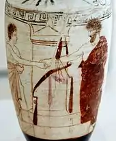 Dexiosis on Attic Lekythos 5th century BCE