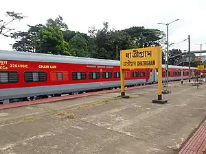 The Hooghly–Katwa Railway constructed a line from Bandel to Katwa in 1913.[3] This line including Dhatrigram railway station was electrified in 1994–96 with 25 kV overhead line.[4]