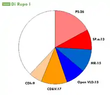 The Di Rupo Government was the federal cabinet of Belgium sworn in on 6 December 2011,[1] after a record-breaking 541 days of negotiations following the June 2010 elections. The government included social democrats (sp.a/PS), Christian democrats (CD&V/cdH) and liberals (Open Vld/MR), respectively of the Dutch and French language groups. The government notably excluded the New Flemish Alliance (N-VA), the Flemish nationalist party which achieved a plurality and became the largest party.[2] Its absence, together with the unwillingness of Open Vld to enter into an eight-party coalition that included the green parties, caused the government coalition to lack a majority in the Dutch language group. It was the first time that the Belgian prime minister had been openly gay, as Di Rupo became the world's first male openly gay head of government (and second of any gender, after Iceland's Jóhanna Sigurðardóttir).[3] Elio Di Rupo also became the first native French-speaking prime minister since 1979 and the first prime minister from Wallonia since 1974 and first socialist prime minister since 1974.