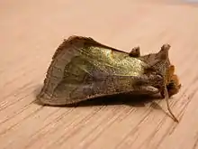 Diachrysia stenochrysis is a species of moth of the family Noctuidae. It is found in Europe, the Caucasus, the Far East, Primorye, Ussuri, Korea, Manchuria, Mongolia, Transbaikalia, Siberia and Japan.