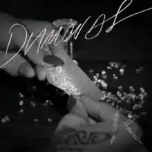The single's cover artwork was revealed on September 24 and depicted Rihanna rolling diamonds in a manner suggestive of joint rolling.[12][13] On September 26, Rihanna posted the full lyrics of the song in a PDF on her official website Rihanna7.com.[14] "Diamonds" premiered the same day on the Elvis Duran and the Morning Show,[15] and on the following day, it was released as a digital download on the 7 Digital store.[16] In the United Kingdom, the song was released to 7 Digital on September 28.[17] Def Jam Recordings solicited the single to mainstream and rhythmic contemporary radio formats in the United States on October 2.[18] On November 5, it was released in Germany as a CD single, which it also contained the song's Bimbo Jones vocal remix.[19] On December 18, eight digital remixes of the single were digitally released.[20]