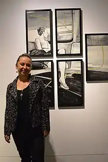 Diana Salazar was born in Mexico City in 1972. She began her art studies at the Escuela Nacional de Artes Plásticas (today the Facultad de Artes y Diseño) of the National Autonomous University of Mexico, UNAM, earning her Bachelor's in 1994 and her master's degree in Art History at UNAM in 1999.[1] As an undergraduate, she specialised in painting, photography and gravure printing. Her Masters thesis was “De la foto a la pintura, Influencias de la visión fotográfica en la mirada pictórica.”[2] These studies were supported by the Jóvenes Creadores scholarships she received in 1995-1996 and 2000-2001, along with one from the UNAM Foundation.[1]