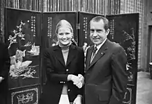 Sawyer was in relationships with Frank Gannon, aide to President Richard Nixon, as well as American diplomat Richard Holbrooke, politician Bill Bradley, and actor Warren Beatty.[32][33][34]