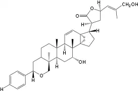 Dichapetalins are a small class of triterpenoid compounds found primarily in the Dichapetalaceae family but also reportedly in Phyllanthus (Euphorbiaceae).[1] They are structural derivatives of dammarene characterized by a C6C2 unit connected to a dammarene or a 13,30-cyclodammarane skeleton with variable C-17 side chains containing actone, spirolactone, lactol, acetal, or furan moieties. They have been found to display cytotoxicity against several cancer cell lines.[2]