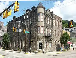 Dick Building, also known as the Cornerstone Building, is a historic commercial and apartment building located at West Newton, Westmoreland County, Pennsylvania. The original section was built in 1890, with an addition made between 1910 and 1925. It is a three-story, L-shaped brick building executed in the Romanesque Revival style. It features a corner semi-circular turret with a conical roof. The building once housed a bank on its first floor.[2]