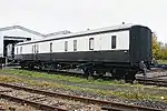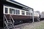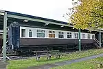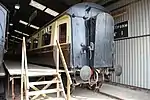 Built in 1900 at Swindon. Originally 14-ton but later 16-ton. Stored amongst other stock in staff use, verandah is covered by inside tarpaulin for protection. | |