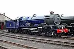 Static Display | Built 1930. Returned to steam in 2010 after completion of a lengthy restoration from scrapyard condition, was originally purchased as a spares donor for sister engine 6024 King Edward I. Boiler ticket expired in 2020.[28] BR blue livery. |