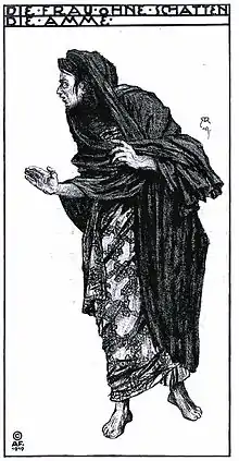 ![]() Costume design by Alfred Roller for the premiere, for the role of the Nurse | |