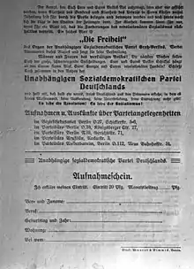 USPD leaflet advertising the newspaper Die Freiheit