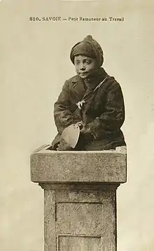 Giorgio grows up in the small Ticino mountain village Sonogno. His parents are poor mountain farmers. One day his mother breaks her leg, and Giorgio is sold as a boy chimney sweep to Milan, as the family had no money to pay for the medical treatment of his mother. A scar-faced man (referred to only as Der Mann mit der Narbe (The man with the Scar)), Antonio Luini, buys him for the sum of twenty Swiss Franks.[1] During his journey to Milan, Giorgio meets Alfredo, who comes from a village in the Misox. The boat capsizes, drowning many of the boys. The few who make their way to the lakeshore, are picked up by Luini and brought to Milan.