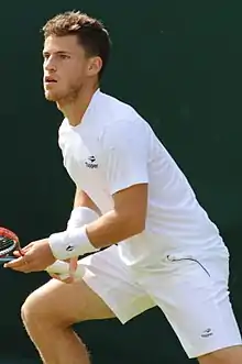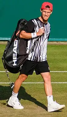 Diego Sebastián Schwartzman (Spanish pronunciation: [ˈdjeɣo seβasˈtjan ˈʃwaɾtsman],[4][5] German: [ˈʃvaʁtsman]; born 16 August 1992) is an Argentine professional tennis player. He has won four ATP singles titles and reached his career-high singles ranking of world No. 8 in October 2020.[6][7] As a clay court specialist, his best results have been on this surface. He is noted for his high-quality return game.[8][9][10][11]