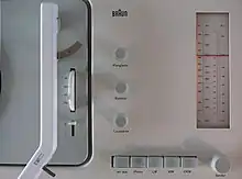 His approach to design and his aesthetics influenced Apple designer Jonathan Ive[11] and many Apple products pay tribute[12] to Rams's work for Braun,[13] including Apple's iOS 6 calculator, which references[14] the 1977 ET66 calculator,[15] and prior to a redesign, the appearance of the playing screen in Apple's Podcast app mimicked the appearance of the Braun TG 60 reel-to-reel tape recorder. The iOS 7 world clock app closely mirrors Braun's clock and watch design, while the original iPod closely resembles the Braun T3 transistor radio.[16][17] In Gary Hustwit's 2009 documentary film Objectified, Rams states that Apple is one of the few companies designing products according to his principles.[18][19]