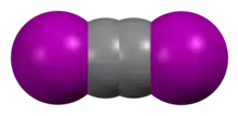 Diiodoacetylene is the organoiodine compound with the formula C2I2. It is a white, volatile solid that dissolves in organic solvents. It is prepared by iodination of trimethylsilylacetylene.[1] Although samples explode above 80 °C, diiodoacetylene is the most readily handled of the dihaloacetylenes. Dichloroacetylene, for example, is more volatile and more explosive.[2] As confirmed by X-ray crystallography, diiodoacetylene is linear.[3] It is however a shock, heat and friction sensitive compound. Like other haloalkynes, diiodoacetylene is a strong halogen bond donor.[4]