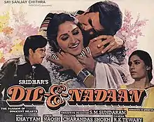 Dil-e-Nadaan (transl.โ€‰The Innocence of heart) is a 1982 Indian Hindi-language romance film directed by C. V. Sridhar. The film stars Rajesh Khanna, Shatrughan Sinha, Jaya Prada and Smita Patil. It is a remake of Sridhar's 1978 Tamil film Ilamai Oonjal Aadukirathu.[1]