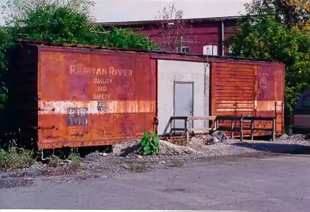 After a fire in the early 1970s this boxcar was restored by the Raritan River RR for local use. Later, it became a tool shed at Dillerville Conrail yard.