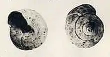 The height of the shell attains 4 mm, its diameter 5 mm. The rather small shell had a trochoid shape. The surface appears smooth and shiny. The depressed spire consists of four or five subangular whorls, equipped with a broad groove between the spiral obsolete angle and slightly protruding bead that comes in above the linear and deep suture. In the middle of this groove, there is a small furrow that marks its deepest point. Above the angle, the profile of the whorls is a slightly convex. The body whorl is equal to five-sixths of the total height simply striated. It is marked by oblique growth lines. The periphery is obtusely subangular, non keeled, but rather rounded. The base of the shell is slightly convex and smooth. The aperture is round. The peristome is discontinuous and thin, except in the columellar region that contains a callosity.[1]