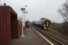 In 1969 the station was renamed as Dilton Marsh, and the platforms were reduced to the length of one coach.[1] British Rail tried to close the station but was met by strong local opposition.[3] The platforms were in poor condition and so were rebuilt in concrete. The station reopened after an eight-week closure on 1 May 1994.[1] In 2018, the wooden shelters and fencing on both platforms were replaced by standard Network Rail bus-shelter-style shelters in glass and metal with galvanised fencing.
