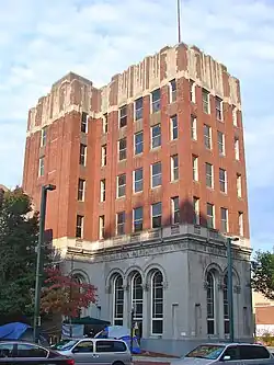 The base is sheathed in limestone, and the distinctive brick and limestone attic level is reflective of the Art Deco style.[2]