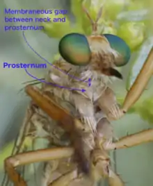 Ventral view of the prothorax in Diogmites angustipennis showing the reduced prosternum typical of the subfamily Dasypogoninae