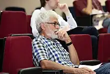 Dionys Baeriswyl in the auditorium of the International Institute of Physics in Natal, Brazil