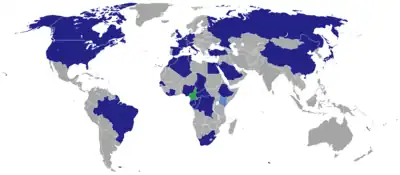 - ↑ Also accredited to the Food and Agriculture Organization, International Fund for Agricultural Development, and the World Food Programme