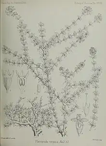 Dirichletia virgata, synonym Placopoda virgata, is a species of plant in the family Rubiaceae. It is endemic to Yemen. Its natural habitats are subtropical or tropical dry forests and subtropical or tropical dry shrubland.