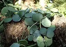 Dischidia astephana is a species of plant in the genus Dischidia native to Peninsular Malaysia and Borneo.[1] A vining epiphyte that can cover an entire tree branch in dense leaves, it is often found growing near other Dischidia including D. albida, D. parvifolia, and D. vadosa.[2] Its leaves are shaped like flat rings or domes, some of which will be tightly appressed to the surface of the tree where it grows. It lives symbiotically with ants of the Crematogaster genus on trees, with the roots growing inside ant nests and using debris for nutrients.[3]