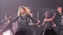 Jackson and her dancers performing Discipline's lead single, "Feedback" during Jackson's Unbreakable Tour (2015-16).