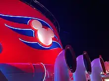 In March 2016, Disney Cruise Line announced that it had commissioned two new ships, described as larger than Disney Dream and Disney Fantasy but with an equivalent number of staterooms.[5][6] A third ship of the class was announced on July 15, 2017 at the D23 Expo.[7] In March 2018, Disney Cruise Line released the first rendering of its new generation of cruise ships.[8][9] The 140,000-ton cruise liners would be LNG-powered and would accommodate at least 2,500 guests.[10] In January 2019, the class of ship was confirmed as Triton in public documents published by Port Canaveral.[11][12][13] However it is now following the standard naming of class after the first ship.[14]