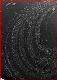 Due to the fact that there are two different materials in DFSW; formation of a composite structure within the nugget zone is inevitable. Typically, it appears in the forming of onion ring in the nugget zone or stir zone of the softer matrix as shown in below figure. That is, fine particle of the material in the advancing side (harder material) disperse throughout the stir zone of the retreating material (Softer material). That is the main reason regarding the inhomogeneous hardness distribution in the stir zone.[28][29][30]