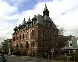The District 13 Police Station is a historic former police station at 28 Seaverns Avenue in the Jamaica Plain neighborhood of Boston, Massachusetts. The Gothic Revival station was designed in 1873 by George Ropes and built for the town of West Roxbury, as one of its last public works before its annexation by Boston. An addition was designed in 1892 by Edmund M. Wheelwright, architect for the City of Boston. The building is one of the only high-style Victorian municipal buildings in the city.[2]
