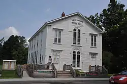 District No. 2 School, Caroline and Dryden, now Caroline Town Hall, is a historic school building located at Slaterville Springs in Tompkins County, New York. It was built in 1869 and is a two-story, 30 feet wide by 50 feet deep, frame structure with a partial basement. The first floor housed grades one through eight, while the second floor accommodated high school classes. The building was used as a school until 1957 and is now used as the town hall.[2]