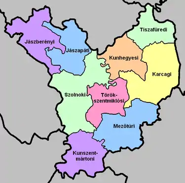 | 10 | Kunszentmiklós District | Kunszentmiklós | 769.81 | 29,906 | 39 | 9 | 3 |