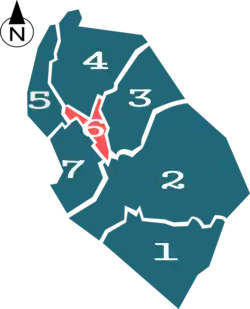The city of La Paz, Bolivia is divided into seven main districts, called "Macro Distritos", which at the same time are divided into 21 small districts or zones.[1] The city is commonly divided by the people into three main zones: South Zone, Central Zone and North Zone.