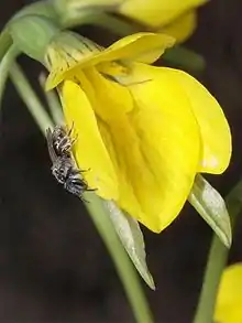 Diuris basaltica, commonly known as little golden moths,[2] or small golden moths[3] is a species of orchid which is endemic to Victoria. The species has suffered a catastrophic reduction in range and distribution as a result of clearing for agriculture, then by urban expansion until only about four hundred plants remain in the wild.