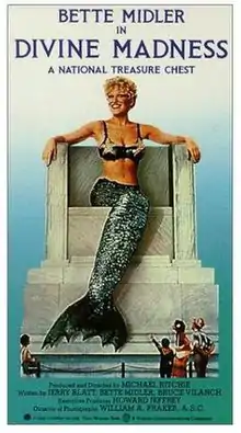 Divine Madness is a 1980 American concert film directed by Michael Ritchie, and featuring Bette Midler and the Harlettes during her February 13—15, 1980 concerts at Pasadena Civic Auditorium in Pasadena, California.[1] The 94-minute film features Midler's stand-up comedy routines, as well as 16 songs, including "Big Noise from Winnetka", "Paradise", "Shiver Me Timbers", "Fire Down Below", "Stay With Me", "My Mother's Eyes", "Chapel of Love" / "Boogie Woogie Bugle Boy", "Do You Want to Dance", "You Can't Always Get What You Want" / "I Shall Be Released", "E Street Shuffle" / "Summer (The First Time)" / "Leader of the Pack", and "The Rose".