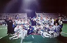 The Division Avenue football team were the 1996 New York State Rutgers Cup champions.[8] Division has also racked up many accomplishments in other sports. In recent years, the girls' bowling team has won two county titles, and the wrestling, girls' soccer, and girls' volleyball teams have won conference titles. The baseball, boys' and girls' lacrosse, and softball teams have all advanced to the county semifinals or beyond in the past few years as well. In boys' lacrosse, Division has produced 13 All-Americans, including Maryland's all-time leading goal scorer, Bob Boniello. They were also 2010 Conference B Champs, tied with Garden City and Wantagh for first place.[9] The Division cross country team won back-to-back New York State Class C Championships in 1969–70. The baseball, girls' basketball, and both the boys' and girls' lacrosse teams play in the top conference of their respective classes. During the 2009–2010 school year, both the girls' soccer and girls' basketball teams went to the Nassau County finals. The girls' basketball team defeated Lynbrook for the first county title in the program's history. The Lady Dragons went on to claim the Class A Long Island Championship. In the 2017 season, Division Lady Dragons girls lacrosse was ranked number one in their conference, winning the conference championships.