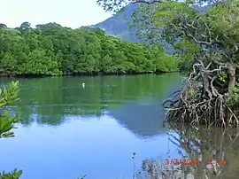 The locality is partly bounded by Cape Tribulation Road to the north, by Alexandra Bay (within the Coral Sea, 16°11′11″S 145°26′50″E / 16.1863°S 145.4472°E) to the east,[4] and by Hutchinson Creek to the south.[5]