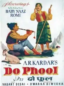 Do Phool (Two Flowers) is a 1958 Indian Hindi-language family drama film directed by A. R. Kardar.[1] Adapted from the 1881 children's novel Heidi by Johanna Spyri,[2] it has Baby Naaz in the role of Poornima (Heidi). The film was produced by Akhtar Sultana Kadar, with dialogues written by Krishan Chander. The music director was Vasant Desai, and the lyrics were written by Hasrat Jaipuri.[3] The film starred Romi, Baby Naaz, Vijaya Choudhary, Bipin Gupta, Ulhas, David, Agha, and Jeevan.[4]