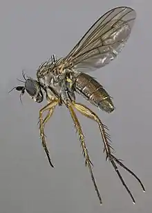 - ↑ Haliday, A. H. (1832). "The characters of two new dipterous genera, with indications of some generic subdivisions and several undescribed species of Dolichopodidae". Proceedings of the Zoological Society of London. 5: 350–368 pl. 15.