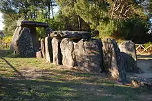 The Dolmen of Cunha Baixa (Portuguese: Anta de Cunha Baixa) is a dolmen in the civil parish of Cunha Baixa, in the municipality of Mangualde. It is located in a valley area of the Rio Castelo, between the villages of Cunha Baixa and Espinho.