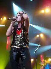 O'Riordan performing with her signature Gibson SG electric guitar in Paris in May 2010[146]