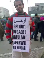 On 27 January 2011, Mohammed ElBaradei returned to Egypt amid ongoing turmoil. He declared himself ready to lead a transitional government if that was the will of the nation, saying that: "If [people] want me to lead the transition, I will not let them down".[24] He called for ousting the regime, as in Tunisia.[25] Subsequently, "when he joined protesters Friday after noon prayers, police fired water cannons at him and his supporters. They used batons to beat some of ElBaradei's supporters, who surrounded him to protect him."[26] ElBaradei said he was "proud of the protesters" and proud of the military, who by 29 January were the only state force on the streets of Cairo, with police nowhere to be seen. There were numerous individual public displays of affection and respect for soldiers manning positions on the streets.[27] He urged the US to end the "life support to the dictator" and that "It is better for President Obama not to appear that he is the last one to say to President Mubarak, 'It's time for you to go.'"[28]