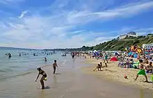 Tourists on the beach in Bournemouth, England
