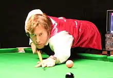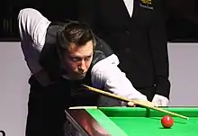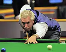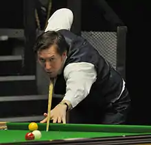 Dale qualified for the World Championship courtesy of defeating Andrew Higginson in the final round of qualifying.[22] He faced Mark Davis in the first round and beat him 10–5, marking his first win at the Crucible since 2000.[23] Dale followed this up with a 13–4 win over Michael Wasley (who had beaten pre-tournament second favourite Ding Junhui in his opening match) to reach the quarter-finals for the second time, 14 years after the first.[24] Dale played Barry Hawkins and trailed 11–5 after the second session, but then amazingly won seven frames in a row to be just one away from reaching the semi-finals and matching the biggest comeback at this stage ever at the Crucible. However, Hawkins won the two frames he required without giving Dale a chance to beat him 13–12. Later, Dale revealed that he had reverted to an old cue action before the start of the final session.[25]