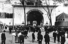 Dominion Park was an amusement park in Montreal, Quebec, Canada, situated between Notre-Dame Street (near Haig Avenue) and the Saint Lawrence River in the early twentieth century. The park opened on June 2, 1906 and was shuttered in 1937, surviving two fires, in 1913 and 1919. It was owned by the Montreal Suburban Tramway and Power company.