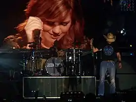 "We decided to go in and film her doing her thing [...] so even though she wasn't at the show, she could still be a part of the show. As big as that song is getting for us right now, it was definitely a song that we thought we had to have in the show. She cut a thing for us to use, and I cut a thing for her to use in her show if she wants to do that. It's a cool way to have her be a part of the show even though she's not going to be there every night."[55]